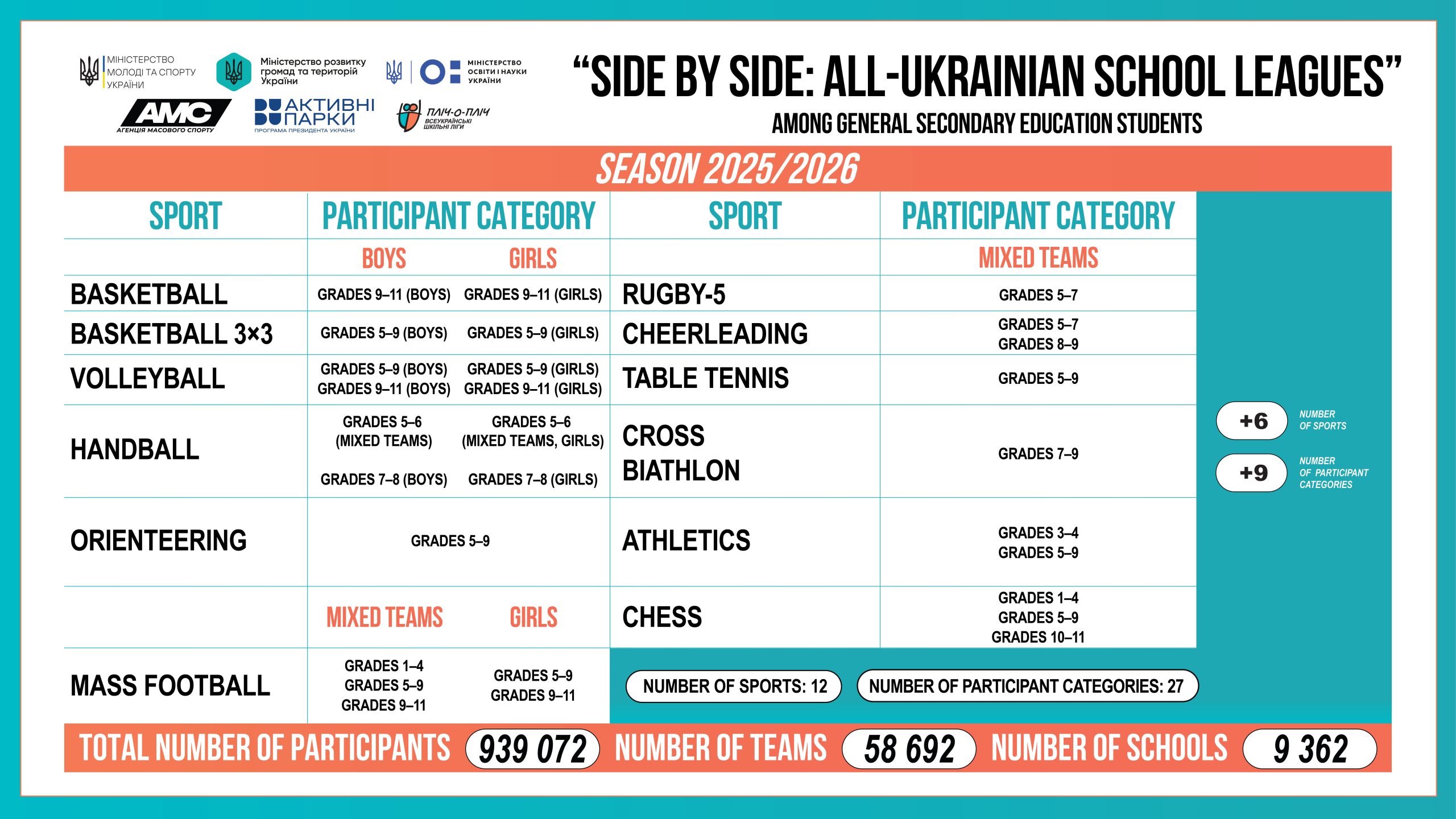 Shoulder to Shoulder All-Ukrainian School Leagues is the largest-scale sports competition among schoolchildren from across Ukraine.